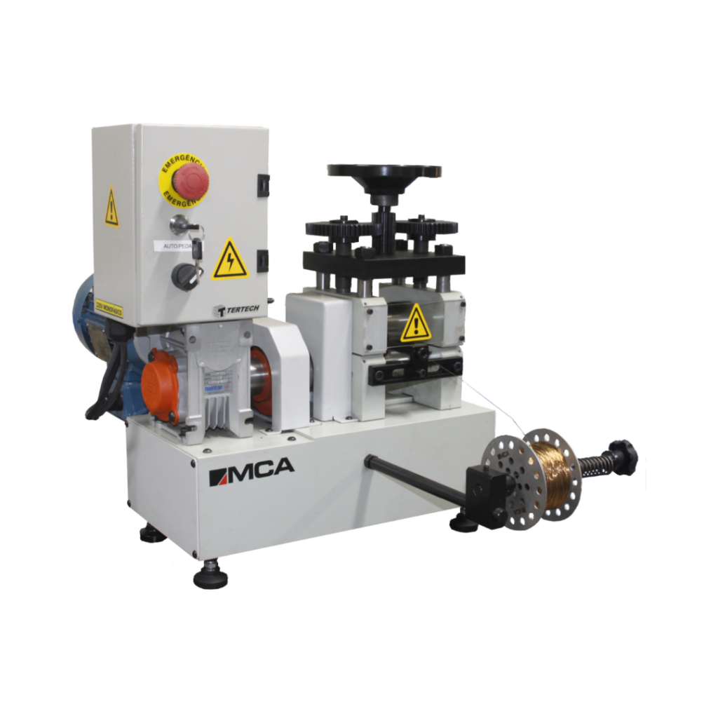 Máquina específica para a laminação de fios e além da redução de diâmetros ou planos, tem a possibilidade de produzir os formatos de meia cana, quadrado e triangular, de acordo com o cilindro utilizado. Possui regulagem manual da espessura do fio (distância entre os cilindros). Sua estrutura robusta é feita em chapas de aço carbono.